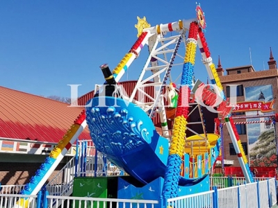 The Pirate ship, also called pirate boat, Viking boat, corsair, is a kind of swing back and forth around a horizontal axis of the rides. All decorative parts of pirate ships are made of fiberglass reinforced plastics (FRP), equipped with deluxe LED lights ,music, non-fading and durable painting and other advanced electrical accessories.